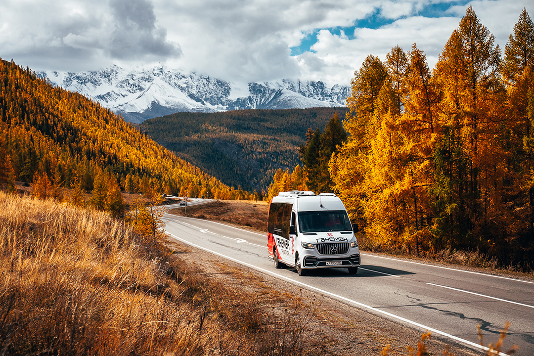 - Переезд на автобусе по всему маршруту (встреча гостей в центре Барнаула и аэропорту Горно-Алтайска)