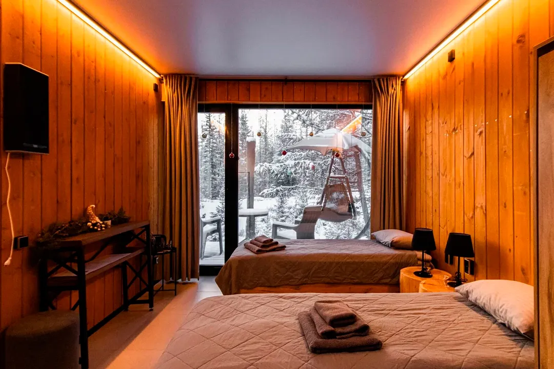 Первые две ночи проживаем в отеле "Pinewood Resort and SPA" (один из лучших на Алтае), в 2х местных зеркальных домиках с туалетом и душем. Отель расположен на берегу Катуни недалеко от аэропорта Горно-Алтайска и удобен для просмотра первых достопримечательностей Алтая. На территории базы есть ресторан с местными Алтайскими деликатесами и горная баня с панорамными окнами и сеновалом.