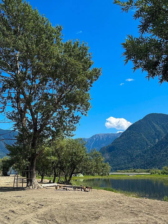 Далее, около 18:00 прибываем на турбазу у берега Катуни. Расселяемся, ужинаем и проводим совместный вечер.